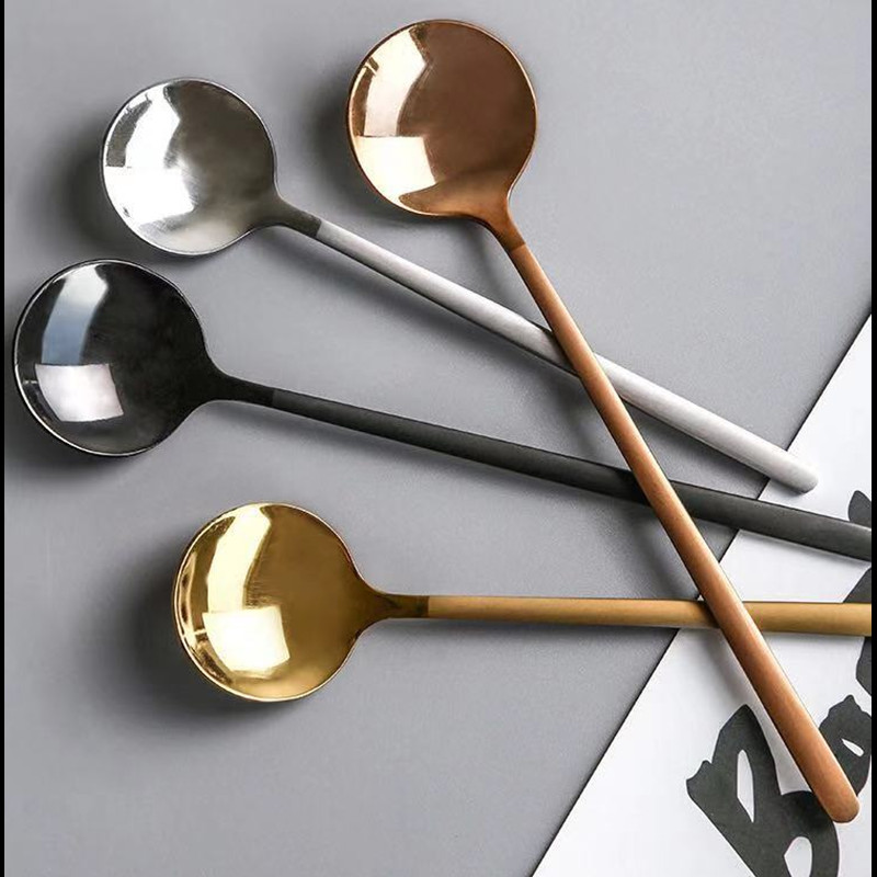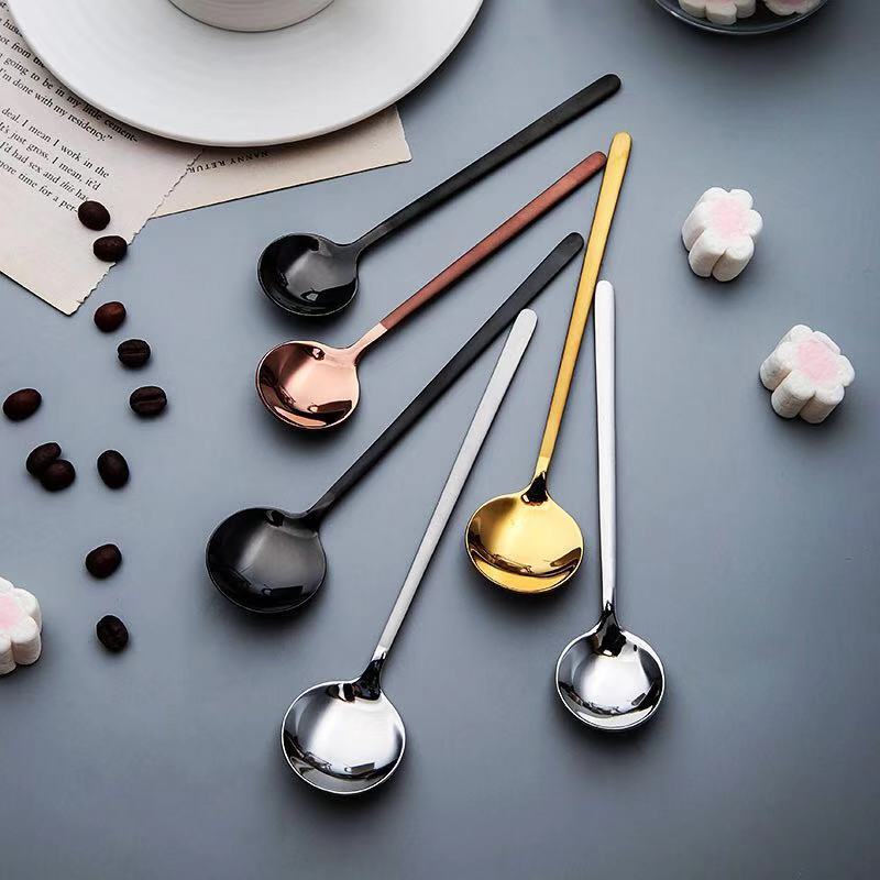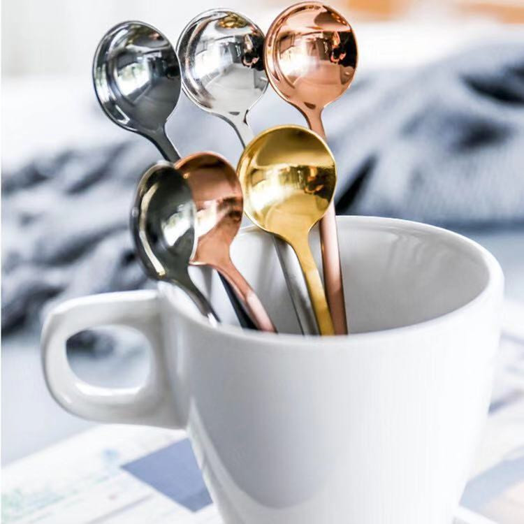 304 stainless steel electroplating mirror dessert spoon coffee mixing spoon fruit yogurt soup spoon western food round head baby spoon