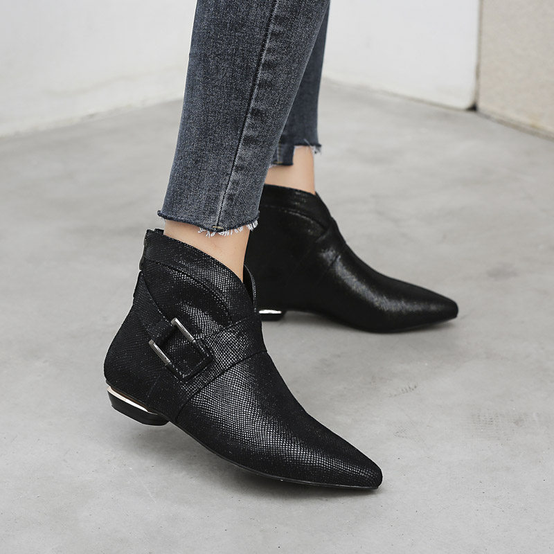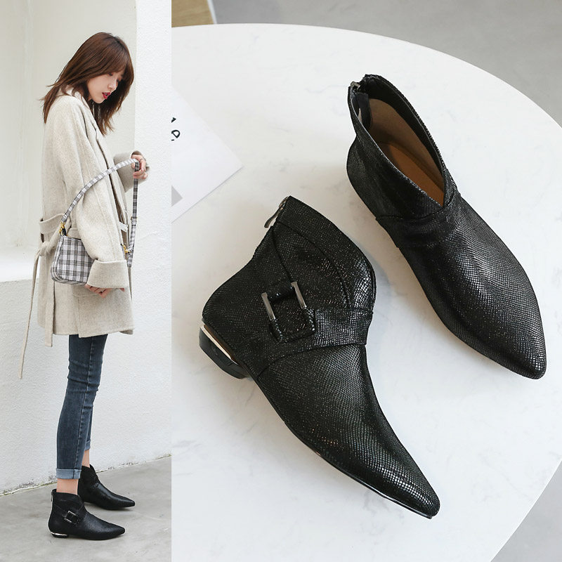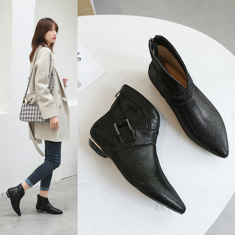Small bottom boots female autumn winter new Han edition of leather tip and ankle boots plus velvet bare boots Martin boots