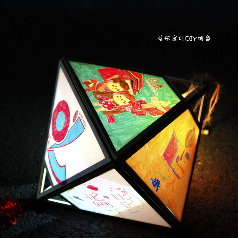 National Day creative antique portable lantern triangle diamond palace lantern DIY material package hand-made lantern wooden lantern