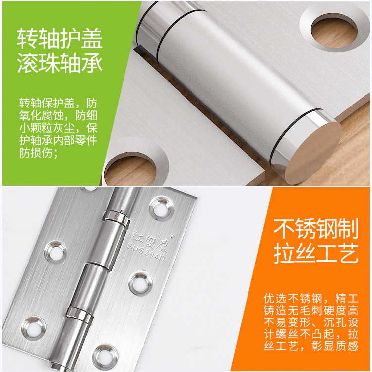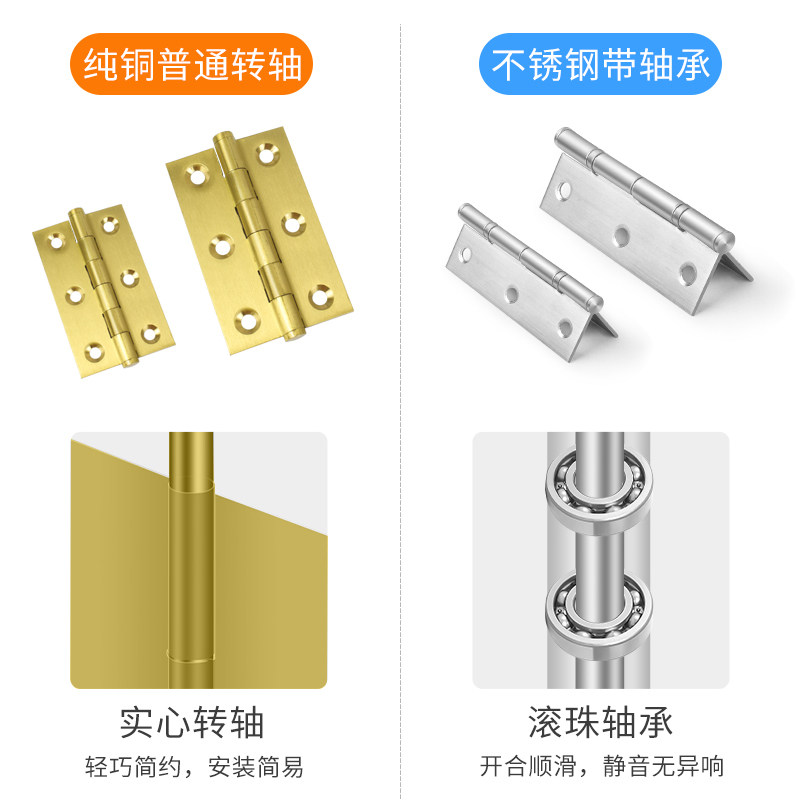 Pure copper thickened stainless steel cabinet door small hinge 2 inches 2 5 inches 3 inches silent bearing small hinge flat open loose-leaf