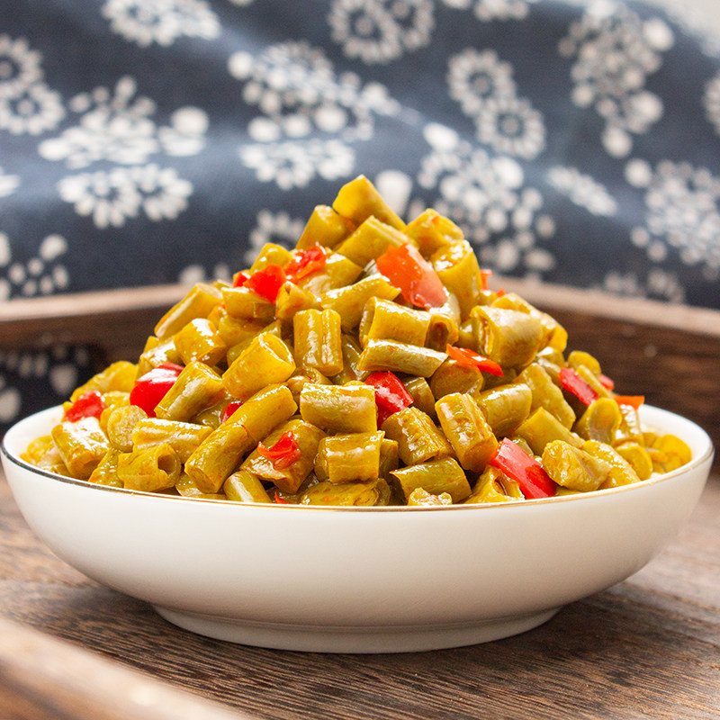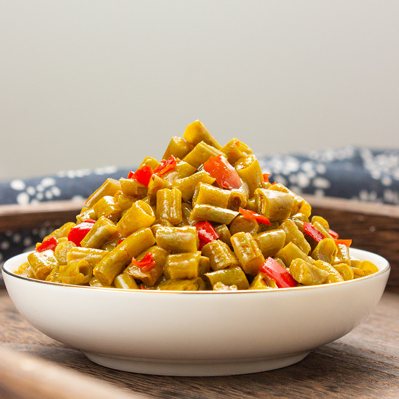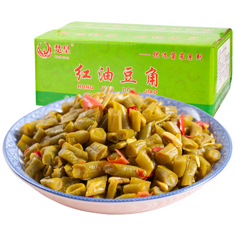 Red oil bean pickles whole box 9 catties spicy next meal farm homemade sour cowpea small pickles crispy beans commercial