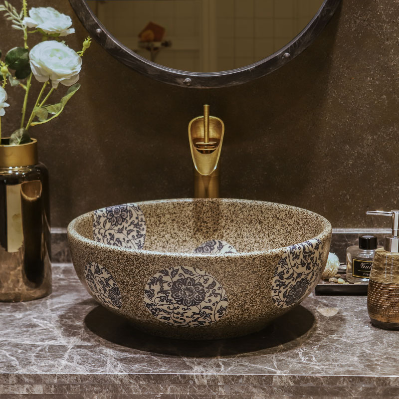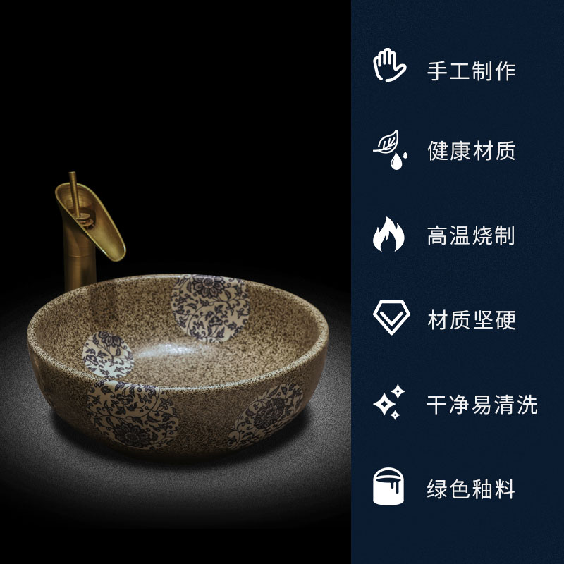 Edge painting retro art table basin ceramic antique Chinese washbasin bathroom balcony washbasin round single basin