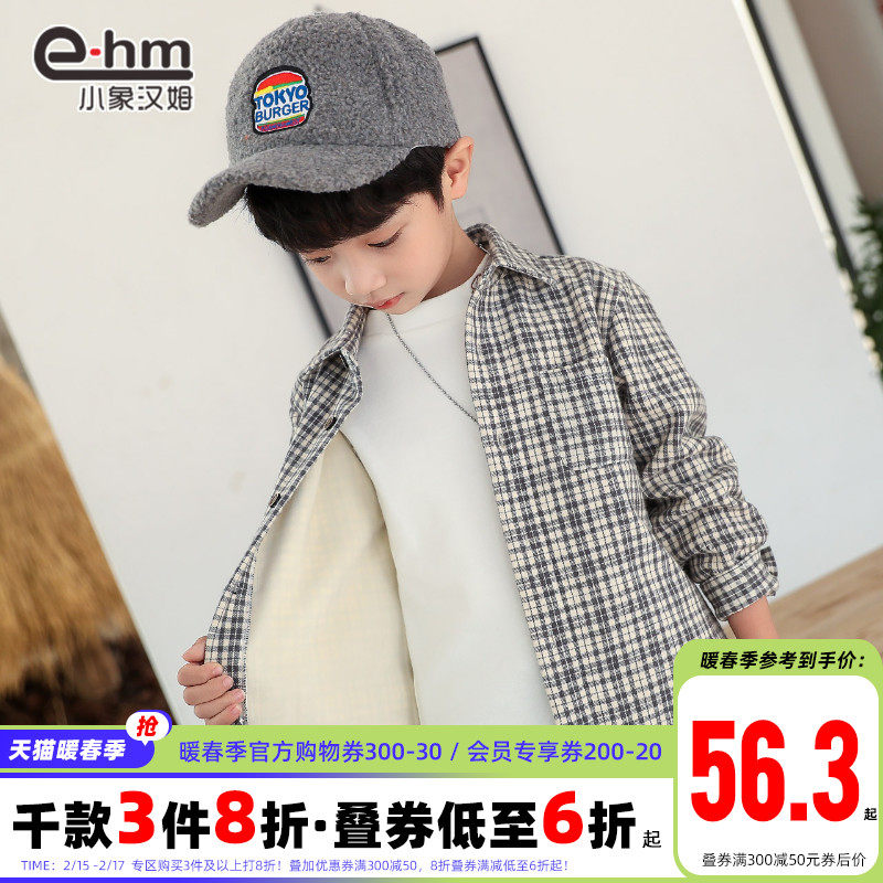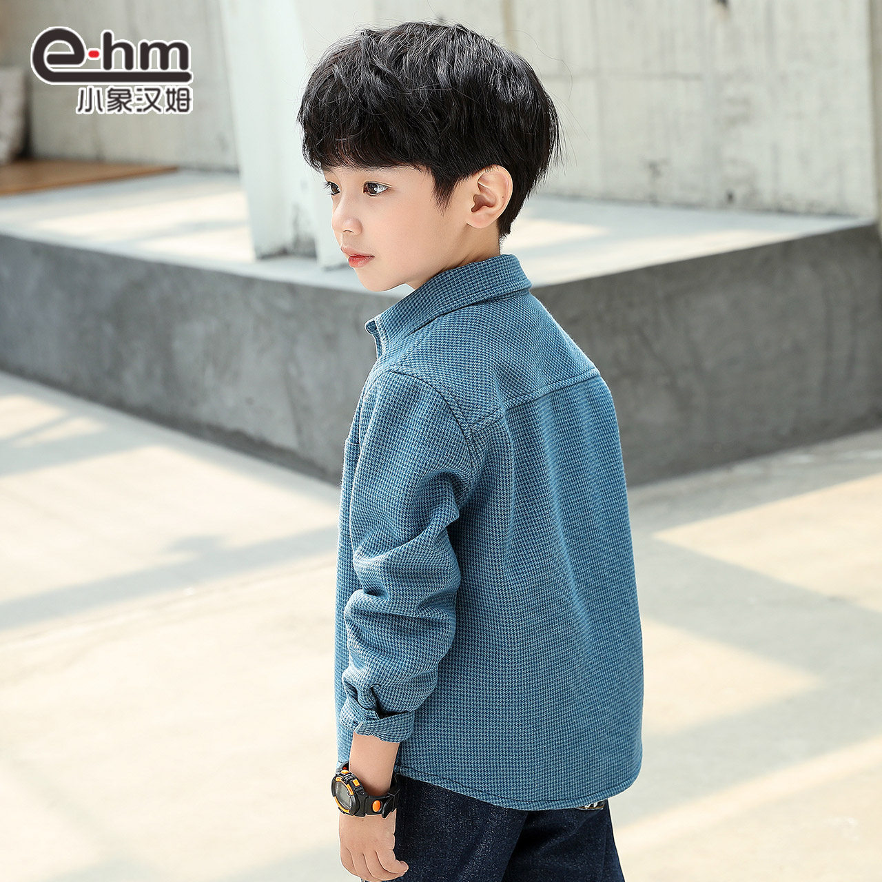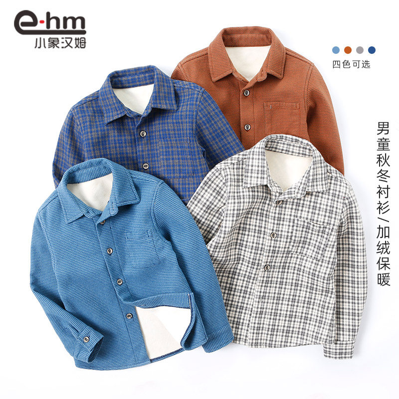 Little Elephant Ham Boys' Fall Winter Plus Velvet Shirt 2022 Autumn Winter New Medium Big Boy Korean Version Tide