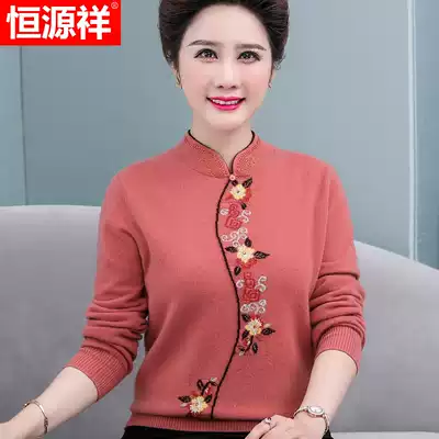 Hengyuanxiang red mother pure sheep sweater female foreign school elderly winter clothes large size base shirt coat