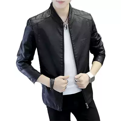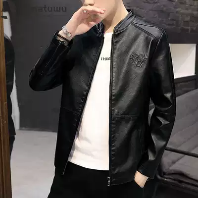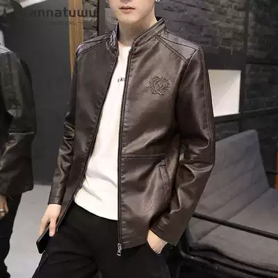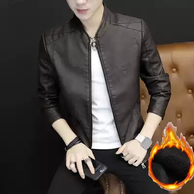 Leather men's leather 2021 autumn and winter slim Korean version of men's vintage handsome leather jacket coat men plus velvet thickened