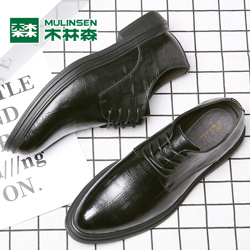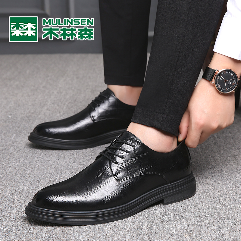 Mulinsen men's shoes business formal British trend business casual leather heightening shoes Korean version black leather shoes men