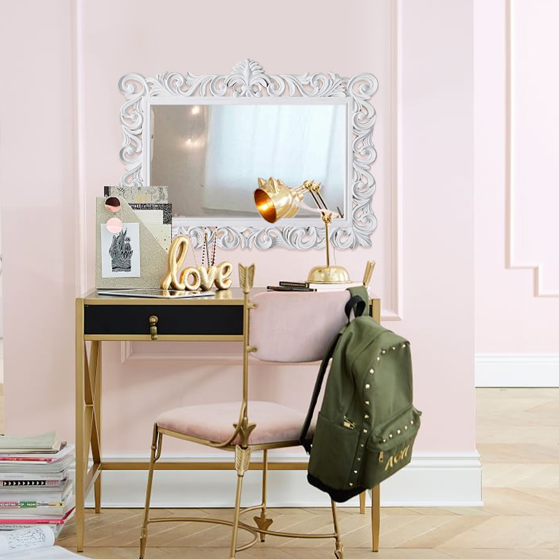 Eurostyle Retro Sculpture Flower Bedroom Full Body Mirror Makeup Desk Makeup Mirror Clothing Store Beauty Shop Full Body Floor Mirror Customize