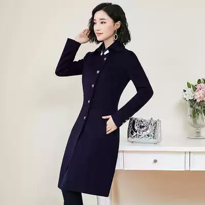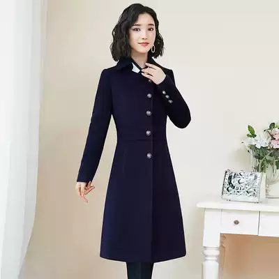 Professional woolen coat women's long version of British style winter thickened temperament work clothes black woolen coat