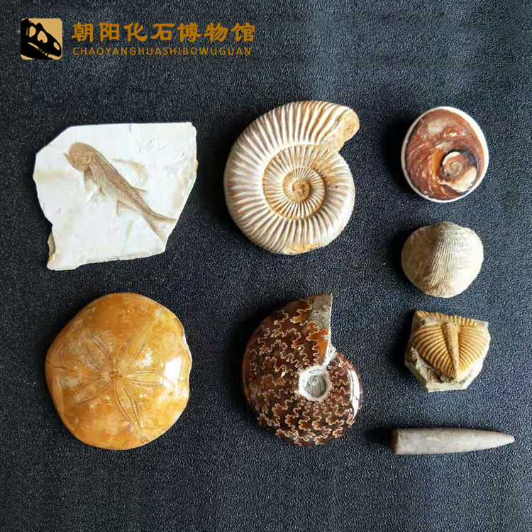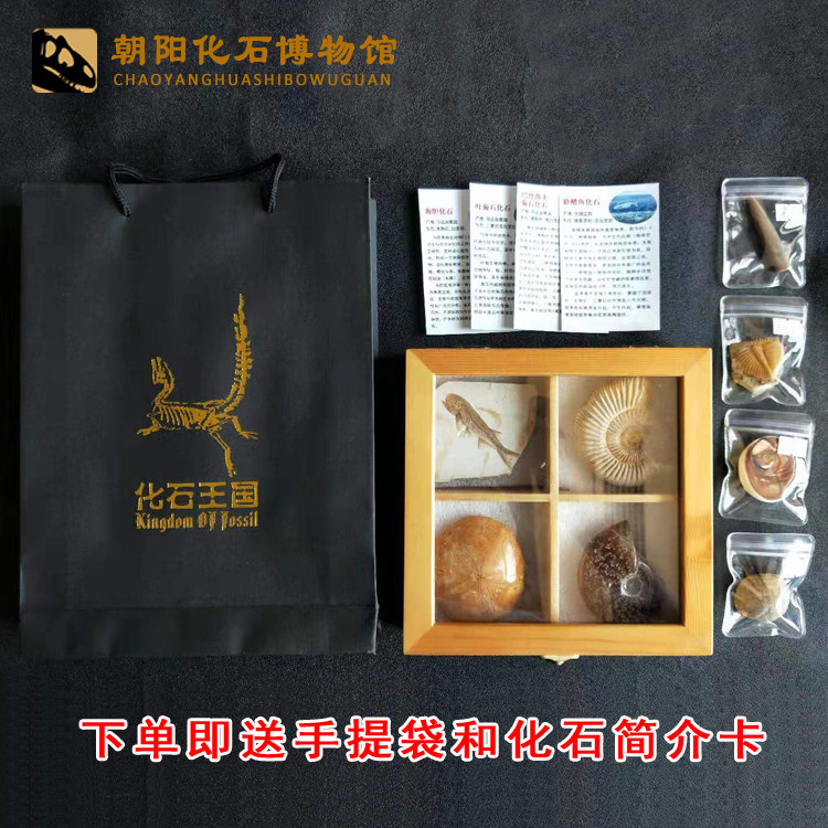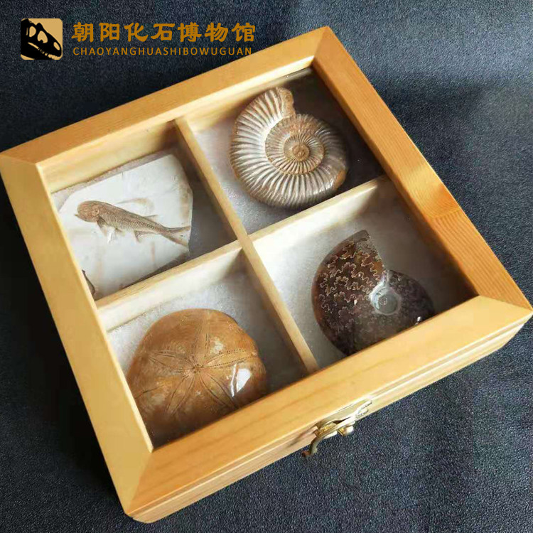 Natural 8 kinds of paleontological animal fish fossil specimen box trilobite ammonite science teaching children's birthday gift