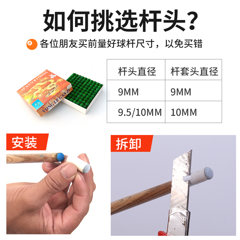 Table club gun head cover Table club head cover plastic small head cap head replacement club head 10mm billiards supplies