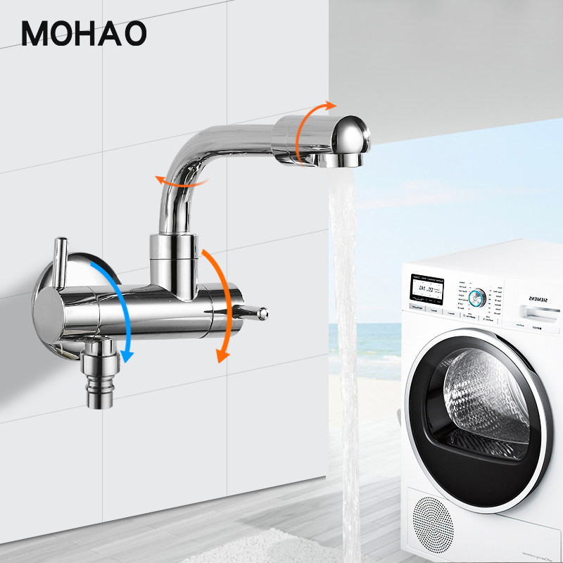 All copper single cold one in two out washing machine faucet extended into the wall mop pool faucet balcony dual faucet