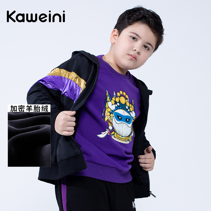 Fat child plus coat boy in autumn winter and heavy boy weighed up loose code boy thickened warm zipper