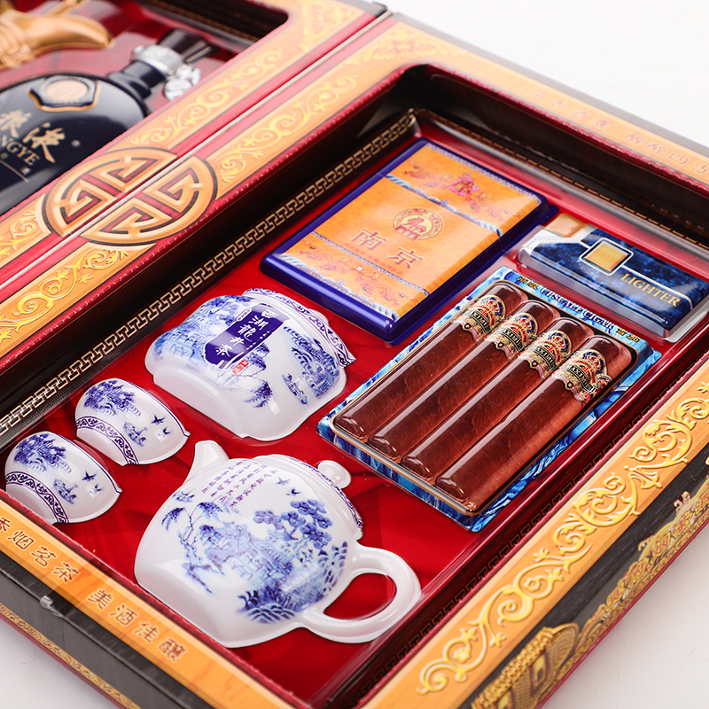 High-end stereo simulation name Smoky Famous Wine Tea Folding Suit First Accessories Box Sacrificial items Upper graves Tomb Burning Paper