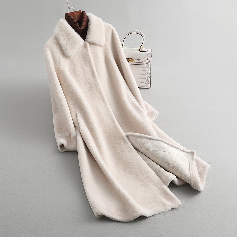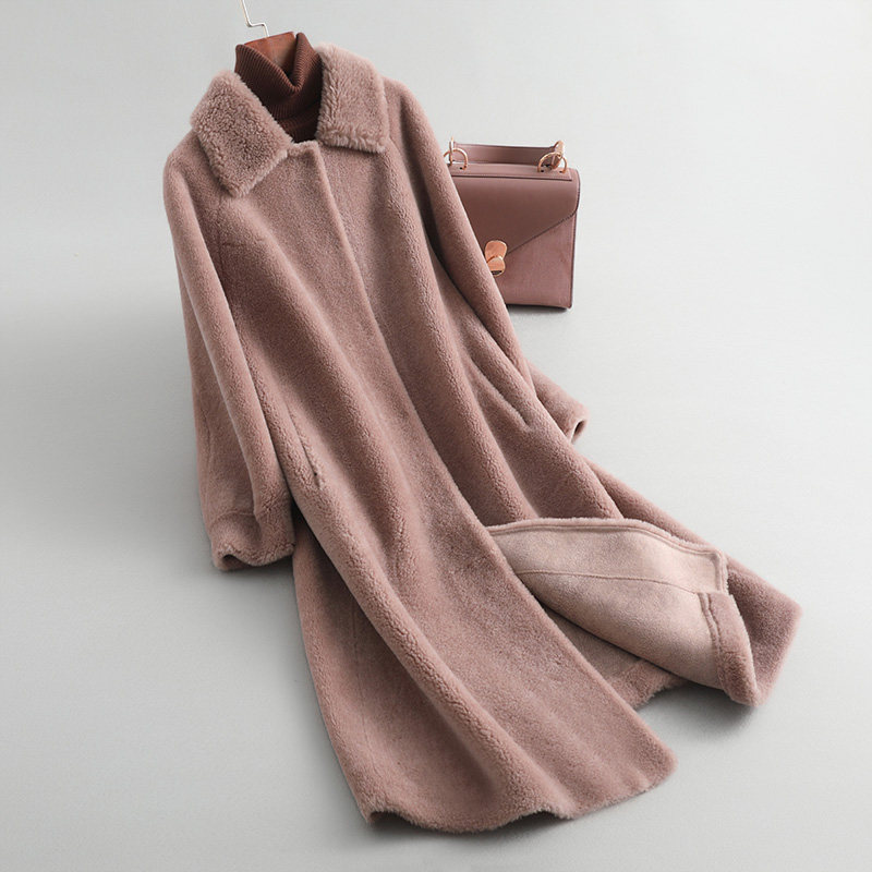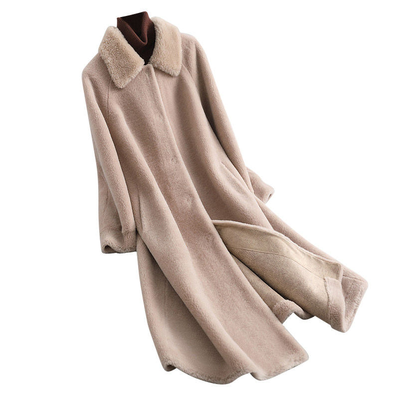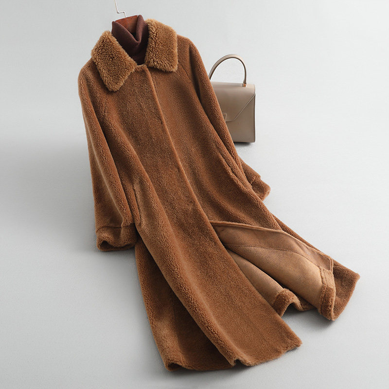 Haining grain fleece sheep sheared coat female 2021 new loose fur one medium and long wool fur coat