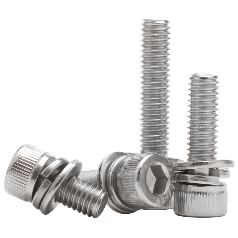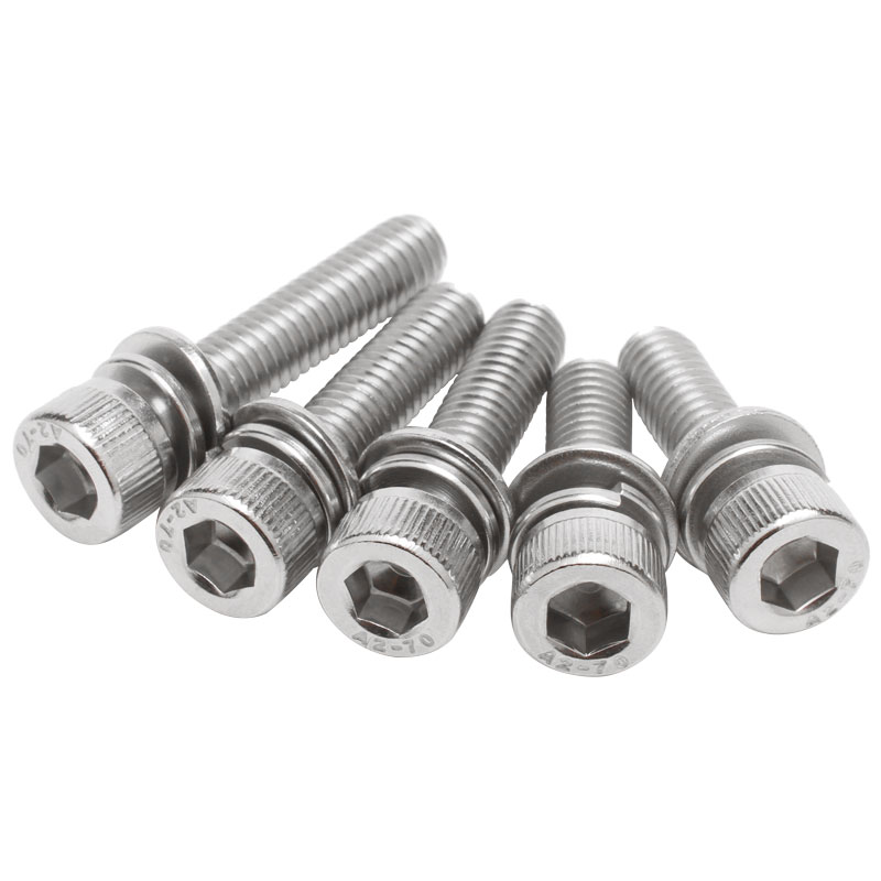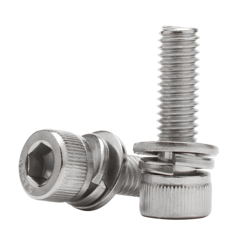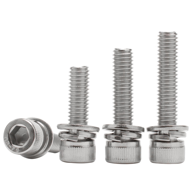 304 stainless steel cylindrical head inner hexagonal triple combination screw flat bomb cushion screw triple combination M3M4M6M8