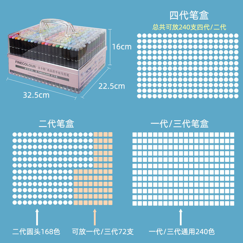 Fakale Mac pen FINECOLOUR generation second generation third generation fourth generation set alcohol double-headed student acrylic first generation 240 color second generation 160 color third generation 480 color fourth generation 240 color full