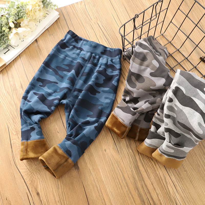 Children's thermal pants boys fleece pants wear warm cotton sanitary pants winter new thickened camouflage underwear