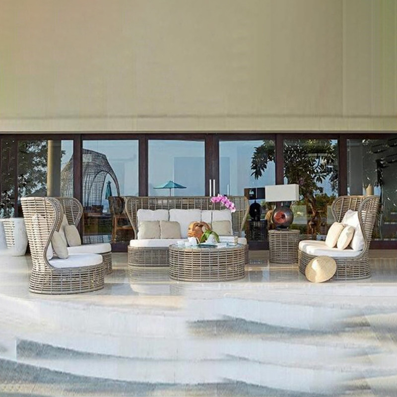 Nordic outdoor sofa creative rattan sofa single designer courtyard balcony living room leisure sofa coffee table