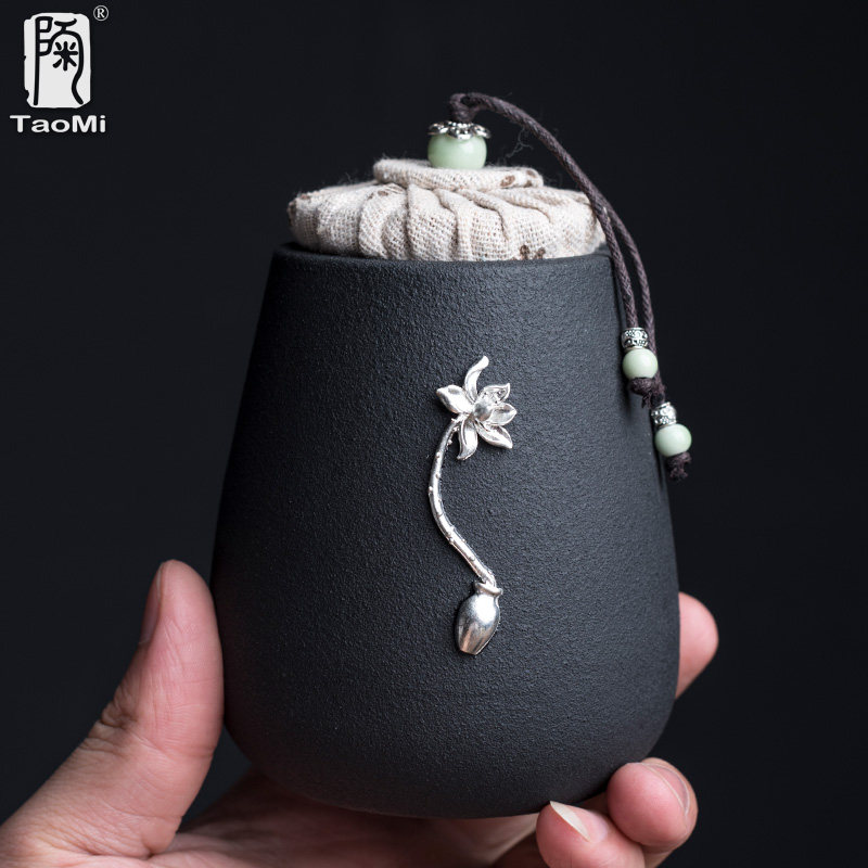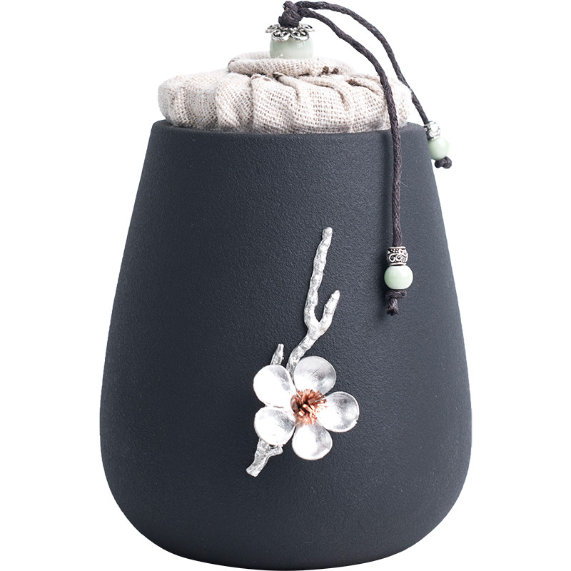 Inlaid Tin Lotus Tea Leaf Pot-Short Inlaid Tin Plum Tea Leaf Pot-Short Inlaid Tin Lotus Tea Leaf Pot-High Inlaid Tin Plum Tea Leaf Pot-High Black Pottery Xiangyun Tea Leaves Jar Black Pottery Far Mountain Tea Leaf Jars