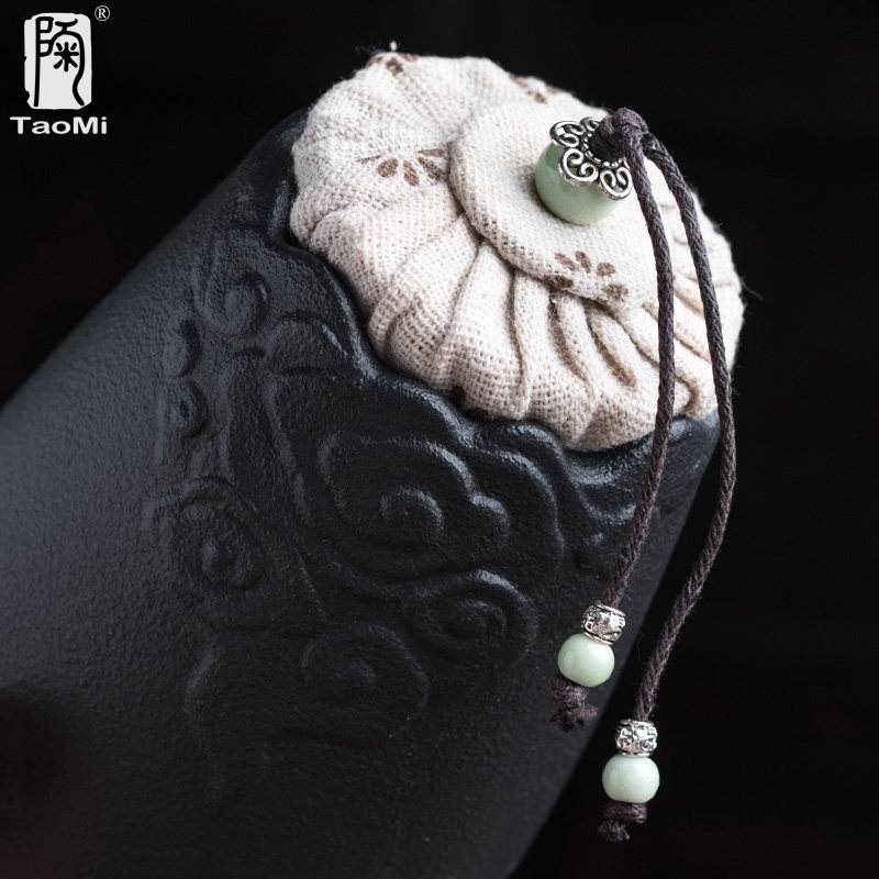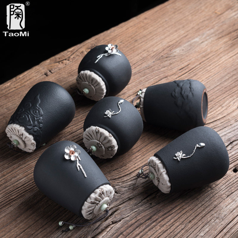The black pottery inlaid tin tea leaf jars