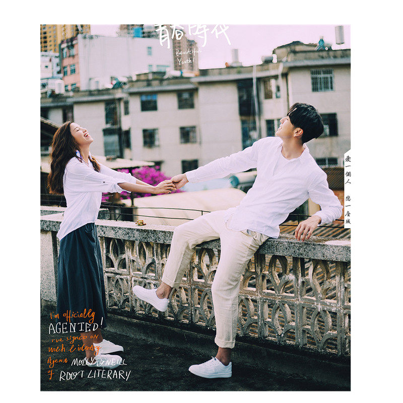 Photo Gallery New Lovers Themed Clothing Fashion Han Edition Campus Outside View Arts College Wind Youth Writing Real Photo Clothes