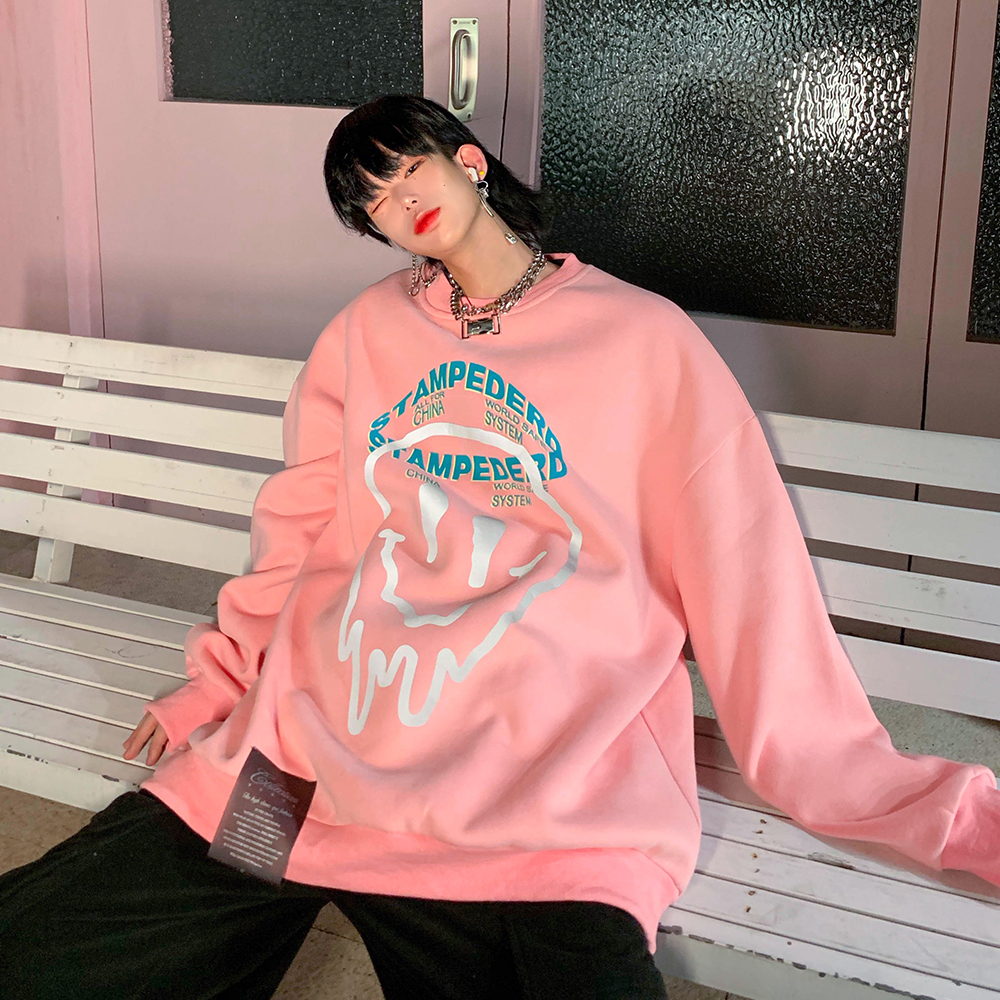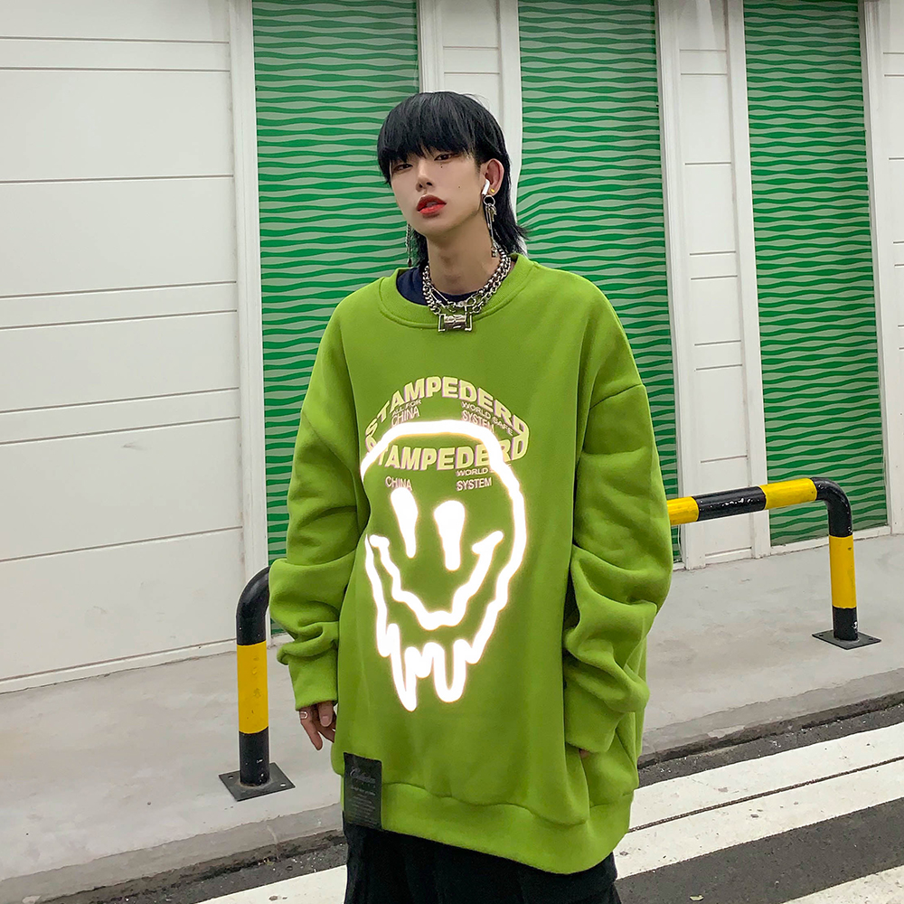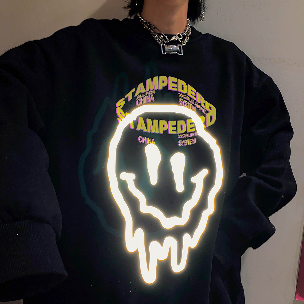 Leman Jinjun Sweater Men and Women Same Round Neck Reflective Print Clothes Spring oversize Tide Loose Top