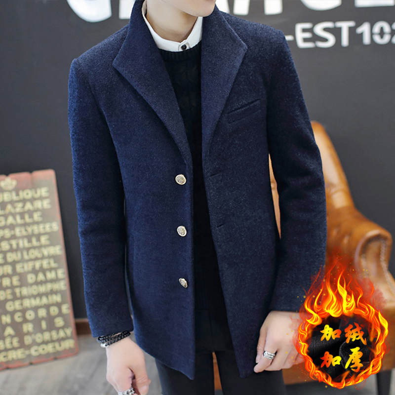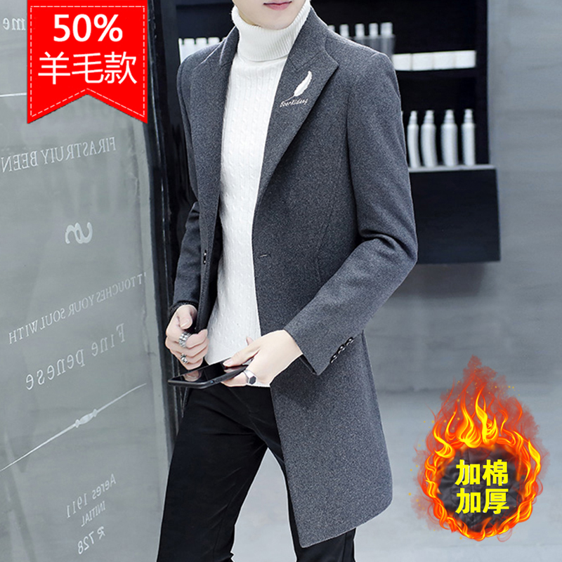 The windbreaker men's medium and long version of autumn and winter cotton Korean version of the trend woolen coat slim handsome woolen coat men thickened
