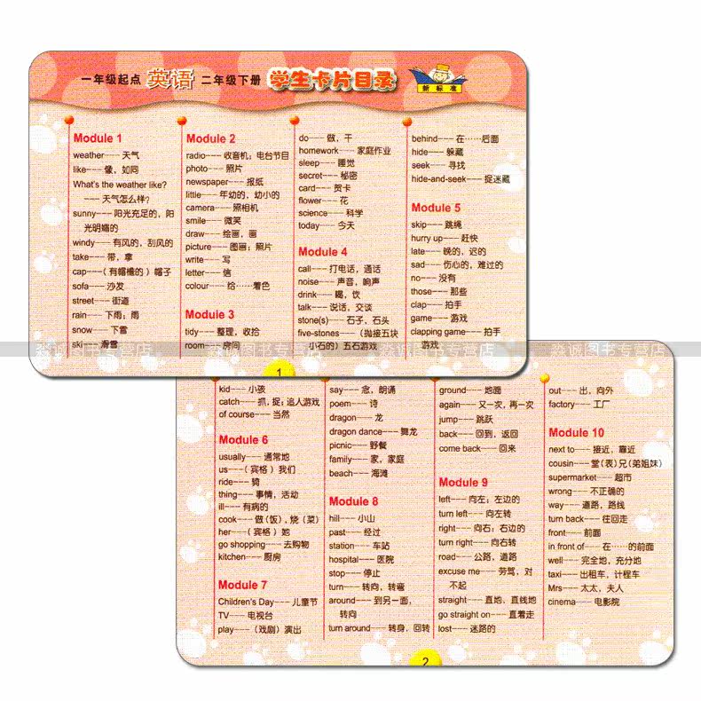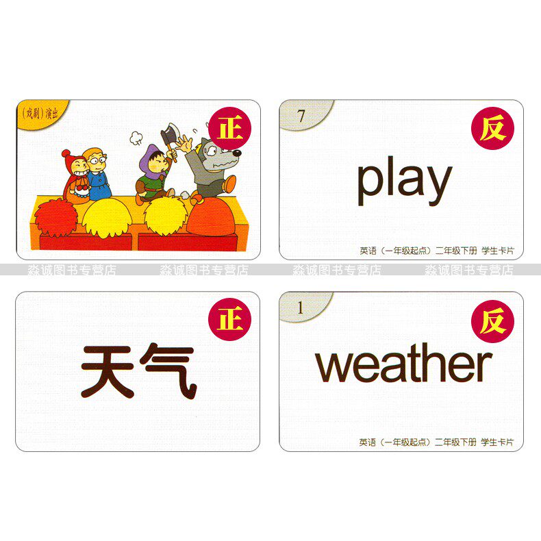 Second grade lower register English single word card external research version new standard together point 2 lower English single word card point read English single word note back card