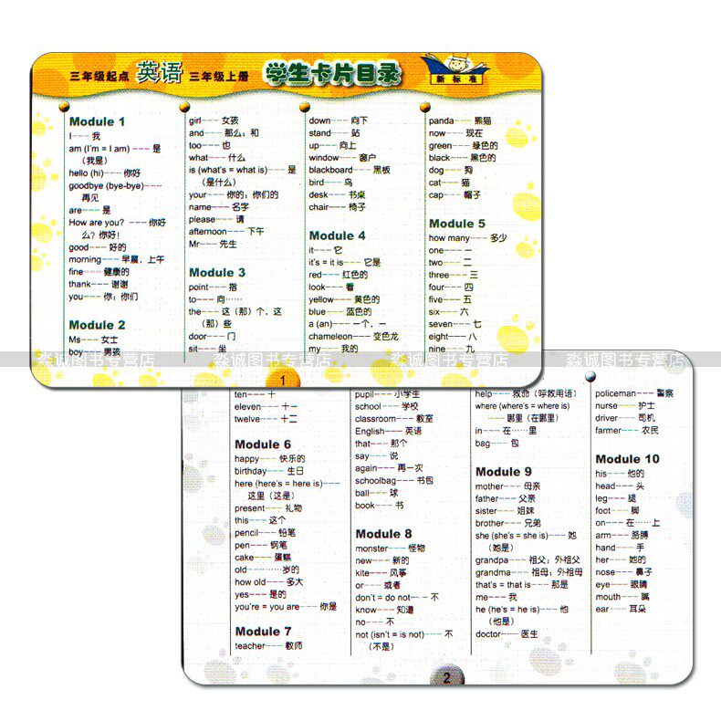 New Standard English 3rd Year Book Student Cards WY Outer Research Edition (3rd grade starting point) Foreign research Institute Primary School 3 grade Upper register English teaching materials synchrome letter single word learning with student tool card primary school