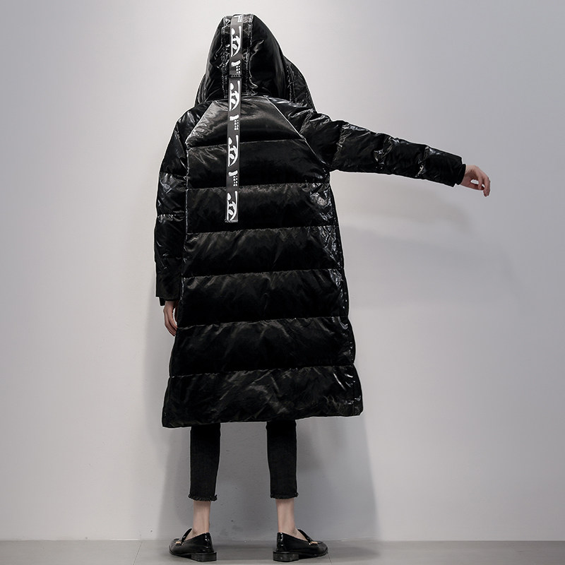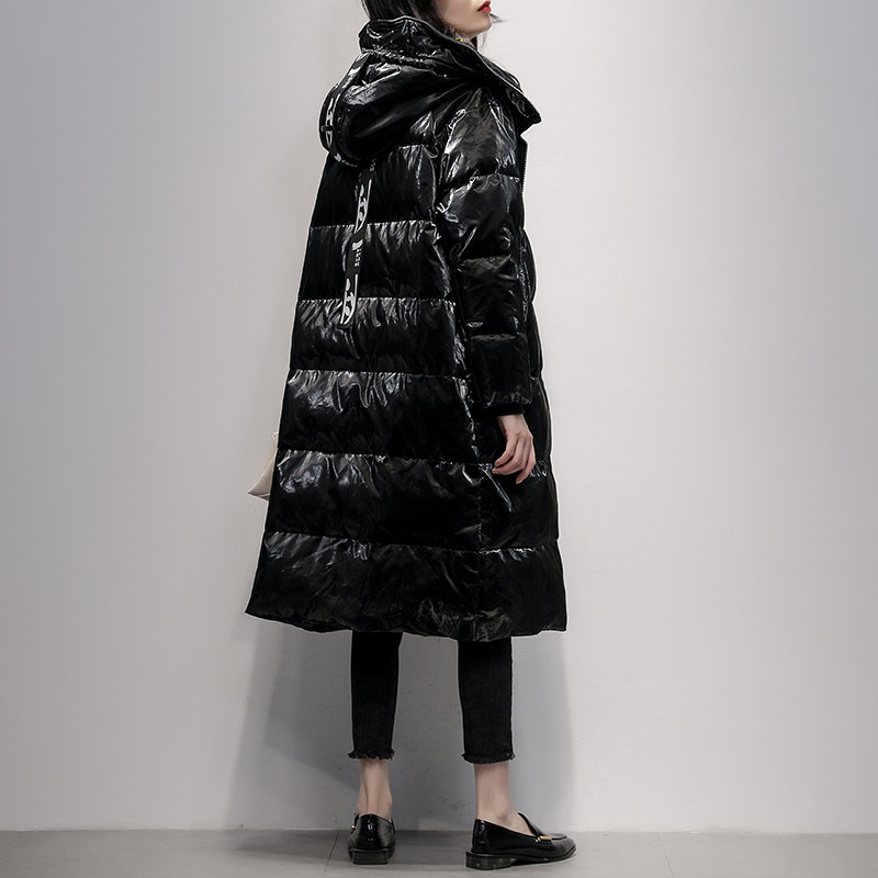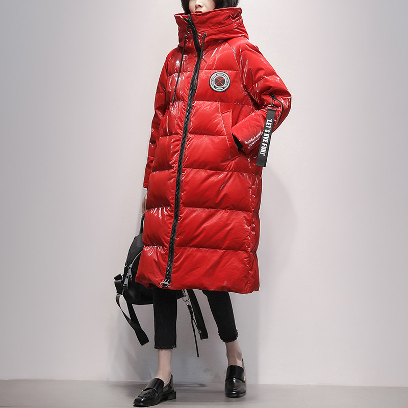 Red over the knee middle - long - edition feather dress 2021 winter new Han - Edition fashion pu brightness coat