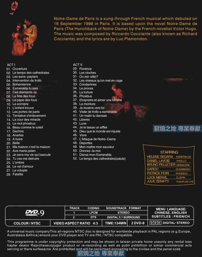 French Musical Bell Tower Freak Notre Dame de Paris (Commemorative Edition) with tidbits in Chinese hardcover 2DVD-2D9