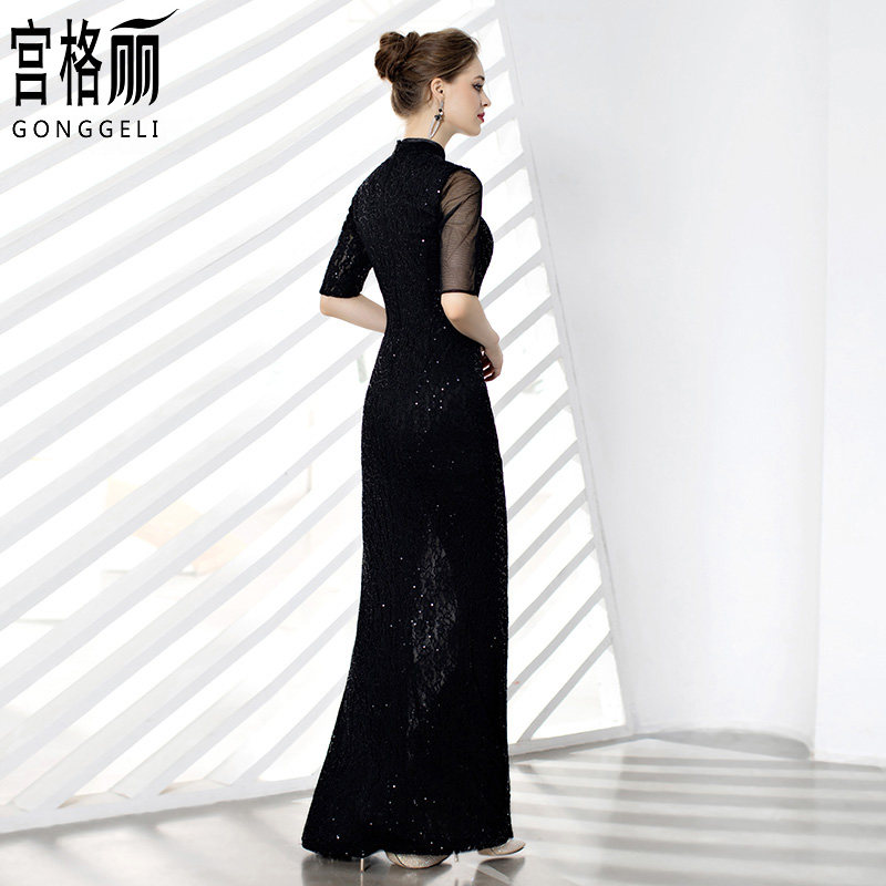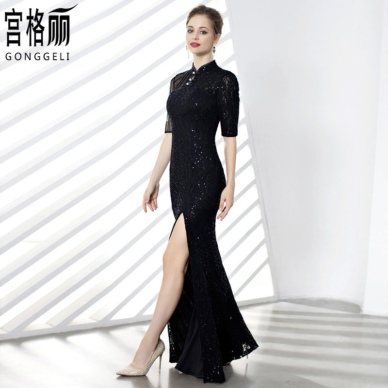 Black dress for women's banquets Elegant Mother Dress the evening dress Improved qipao Long version of the dress