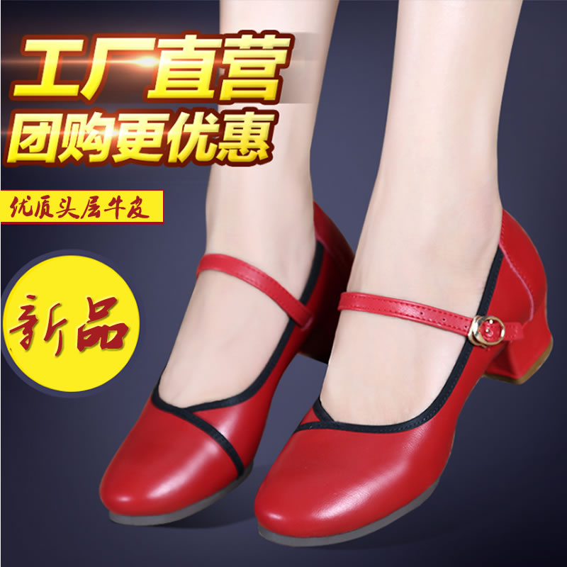 Dance Shoes Women's Squares Dance Shoes Subgenuine Leather Soft Bottom Red Dancing Women Shoes Middle Aged With Social Dance Shoes Fall