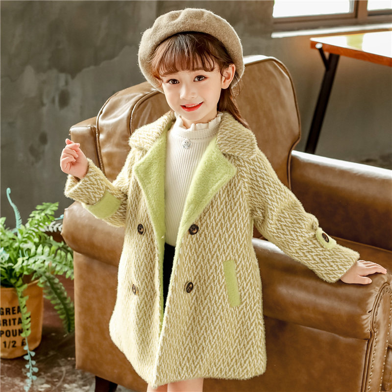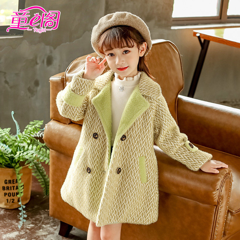 Children's clothing Children's autumn and winter fur, and the long version of the girl's jacket in the girl's clip cotton liner outerwear in the big coat