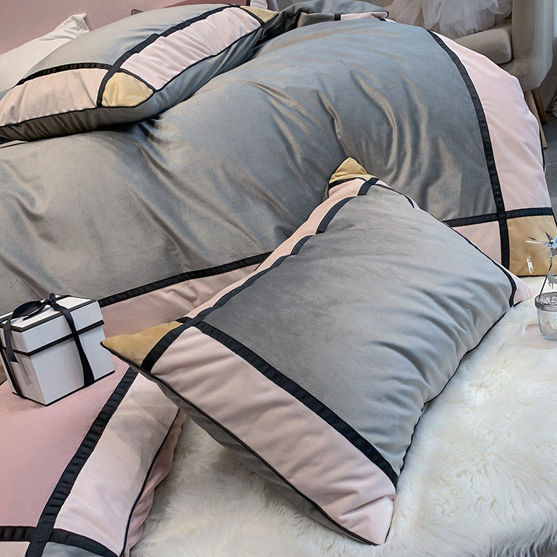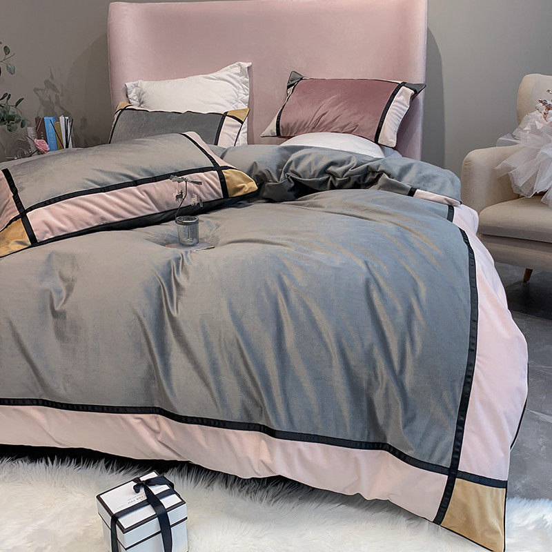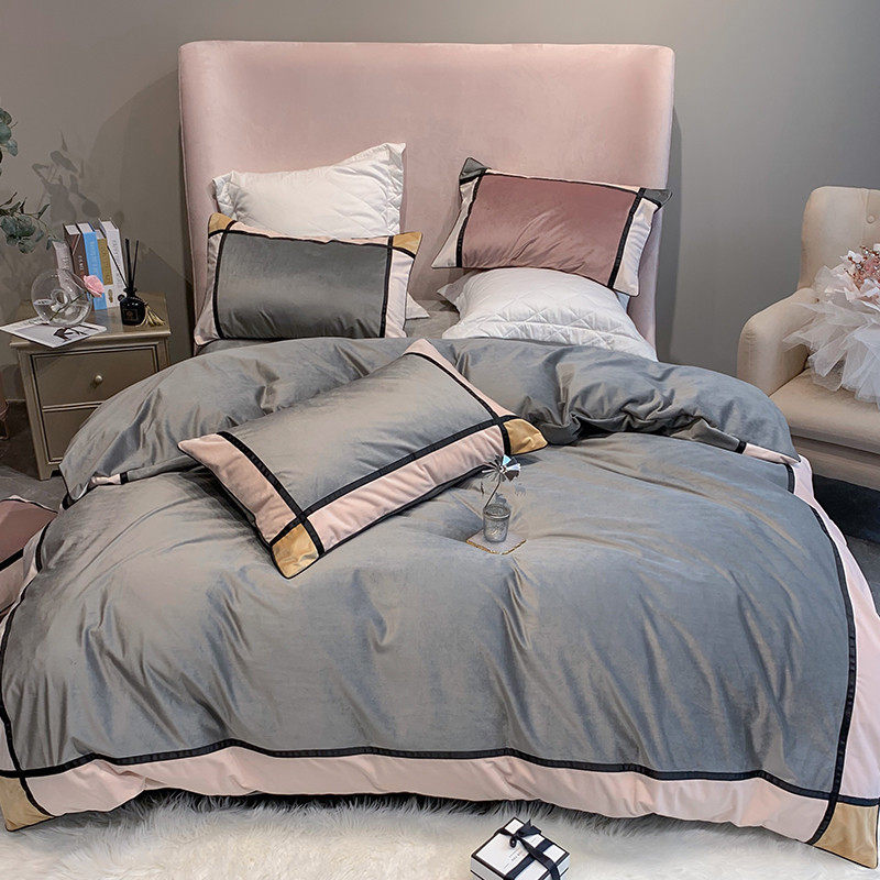 Four-piece winter coral fleece short plush baby velvet warm flannel solid color Nordic wind webbing bedding