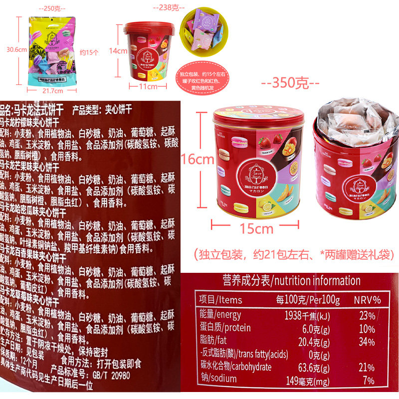 Macau Gold Grammar Style Macaragonsey Style Dessert Sandwich Biscuit Snack Snack Snack Snack Feeding Girlfriend Gift Box Barrel