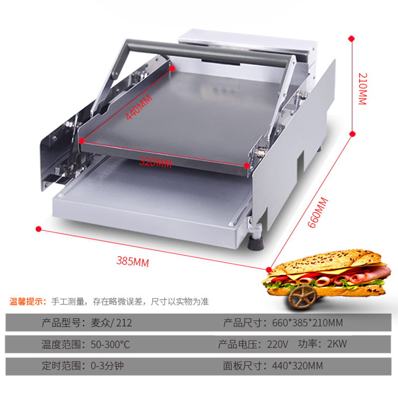 Mazhong thickened double layer hamburger machine 212 commercial hamburger heating machine Baking bread machine Hamburger furnace equipment
