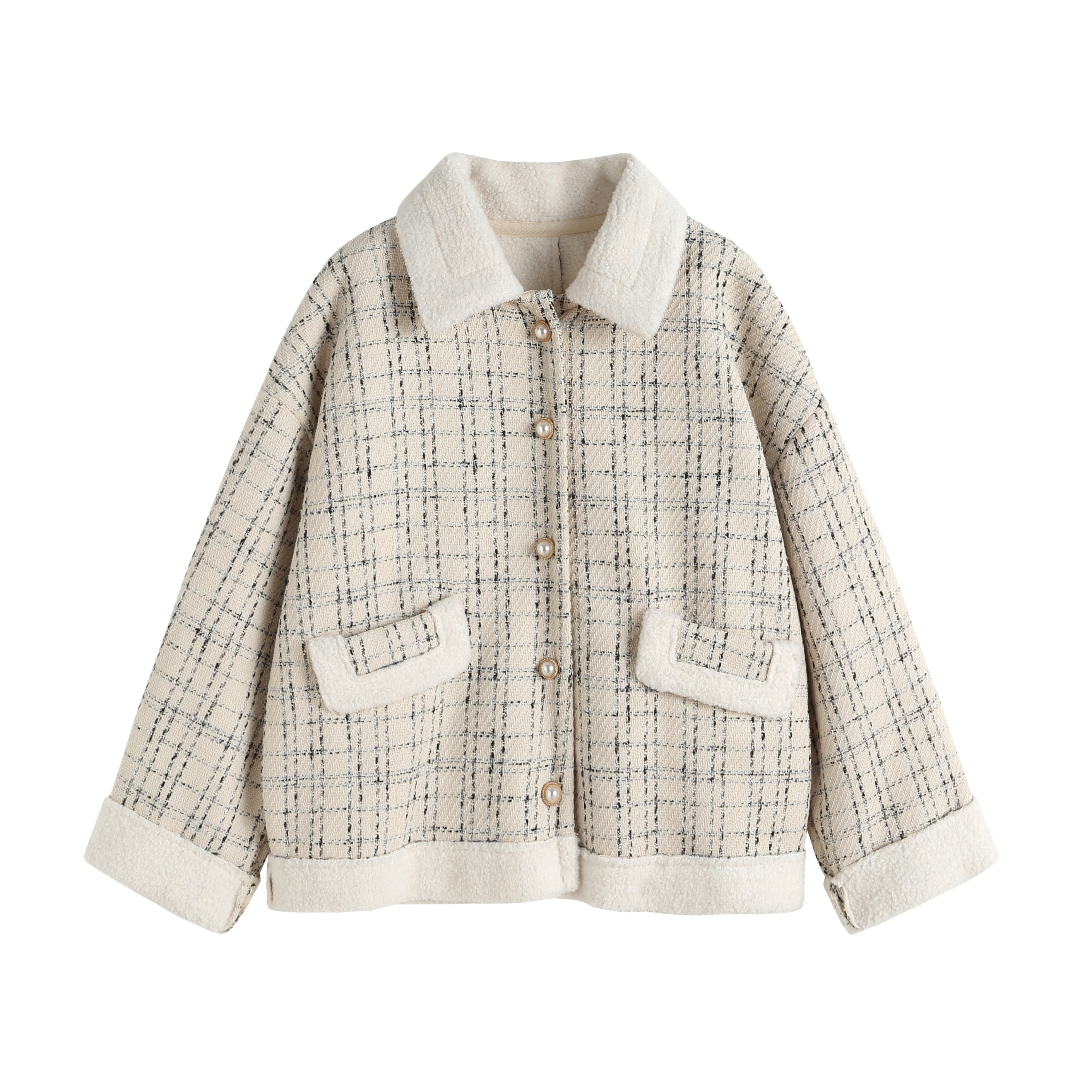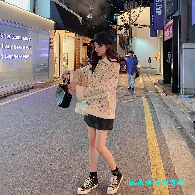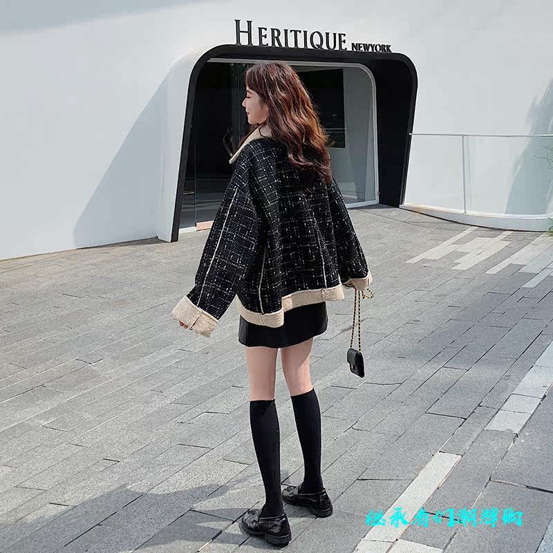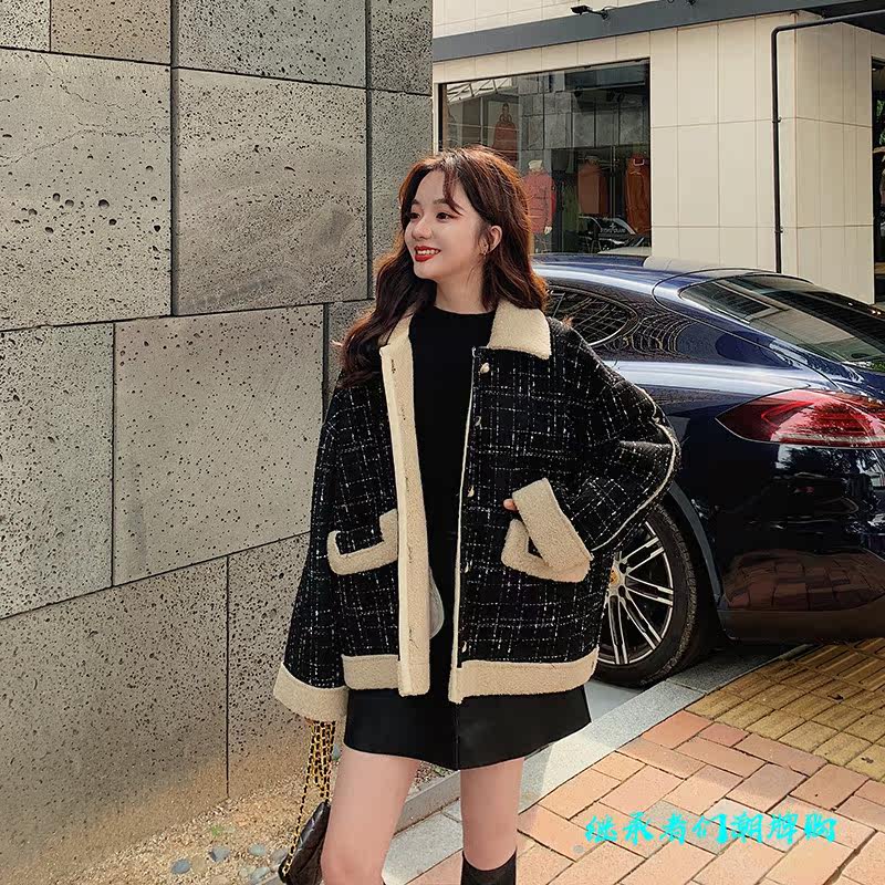 Sandro Moscoloni autumn winter short jacket woman lamb suede small fragrant wind retro plaid blouse 100 hitch
