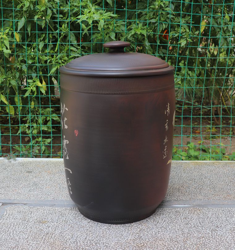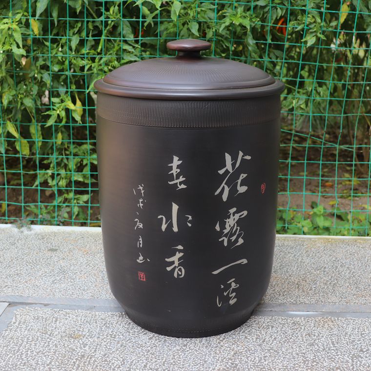 Yunnan Jianshui purple pottery large tea pot Jianshui pot Black pottery tea storage Pan Chaokai exquisite kiln change 13 tea cake cylinder 3