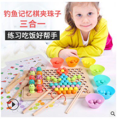 Kindergarten teaching toys Clip beads Fishing Memory chess Three-in-one Sensory integration Training Concentration patience Hand-eye coordination