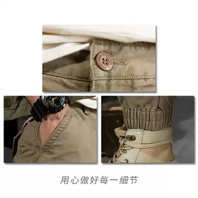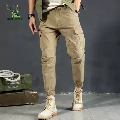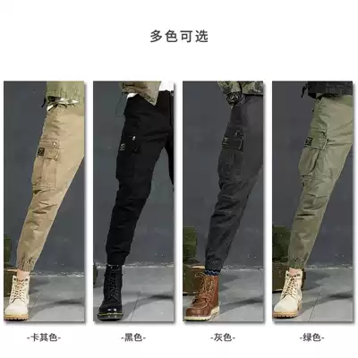 Haixingkhaki multi-bag loose-leg overalls men's Tide brand wide-legged small feet casual pants