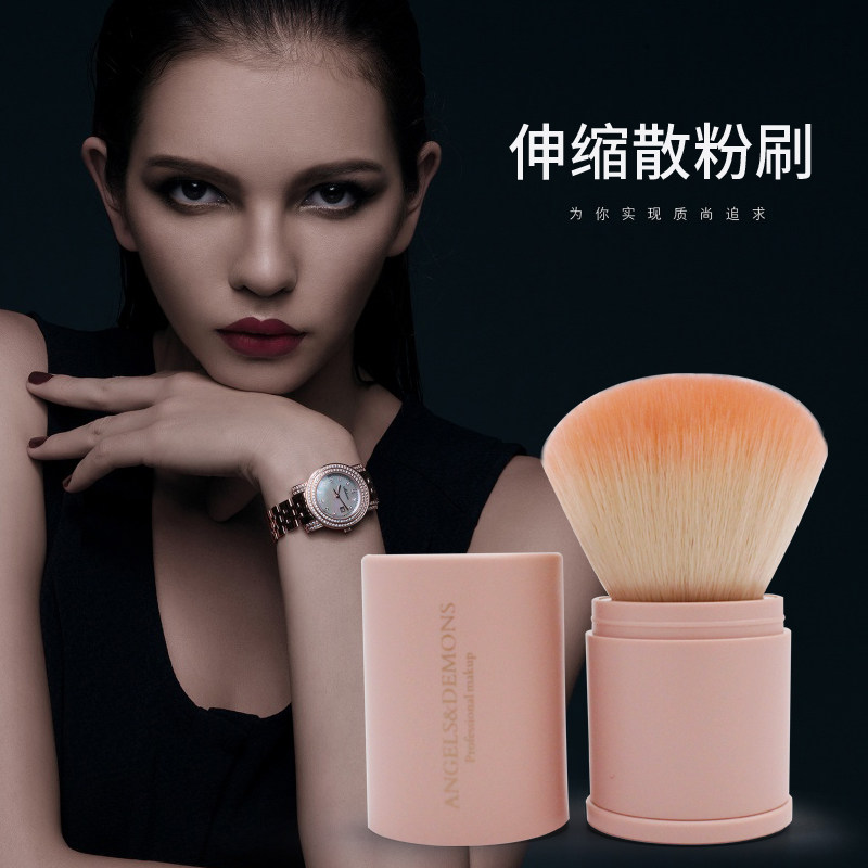 Retractable portable loose powder brush with lid Large powder blush brush setting powder Soft hair makeup brush with brush cover
