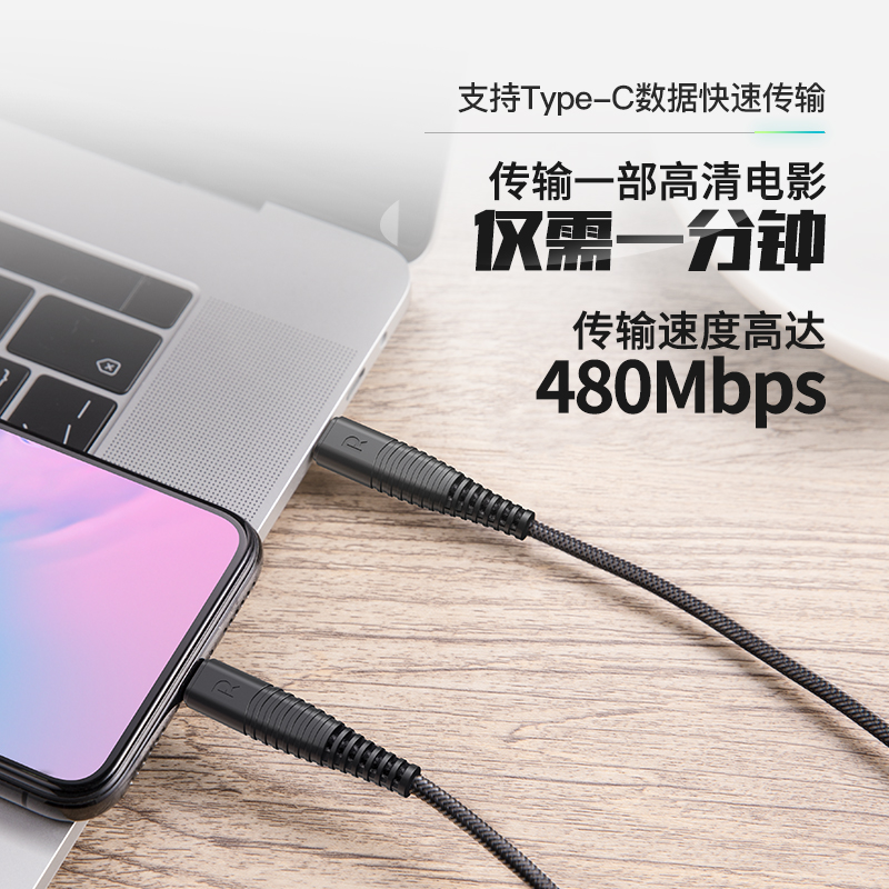 RAVPower Type-C fast charging data cable Male to male c-c double-headed nylon braided cable for Xiaomi vivo Huawei oppo mobile phone Apple Macbook notes