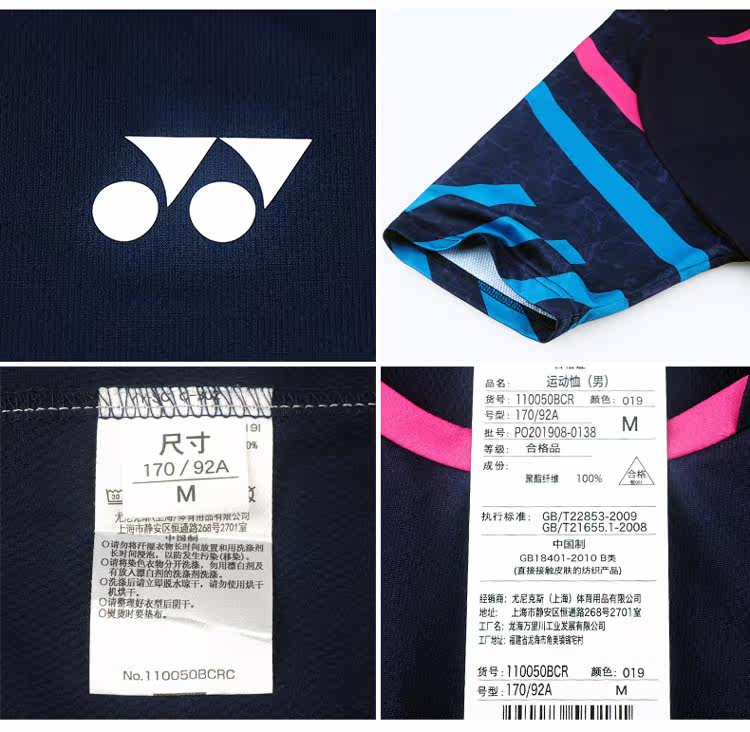 YONEX 110050-019 Dark blue men's badminton suit Yonix match suit round collar