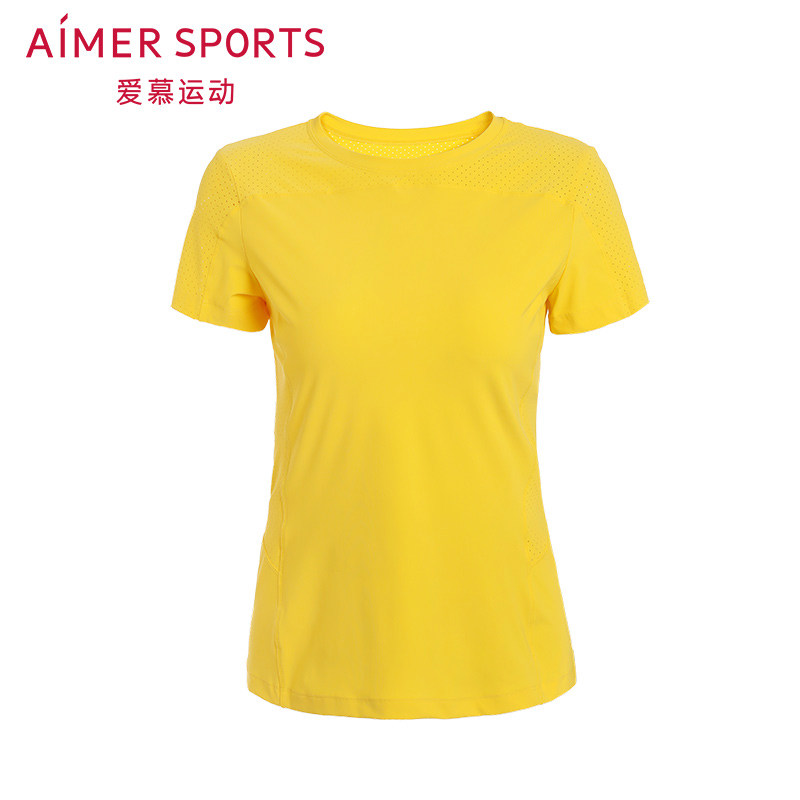AIMER Sport Autumn Winter New iMOVEII light-fit round collar permeable mesh splicing female short sleeve T-shirt AS143G92