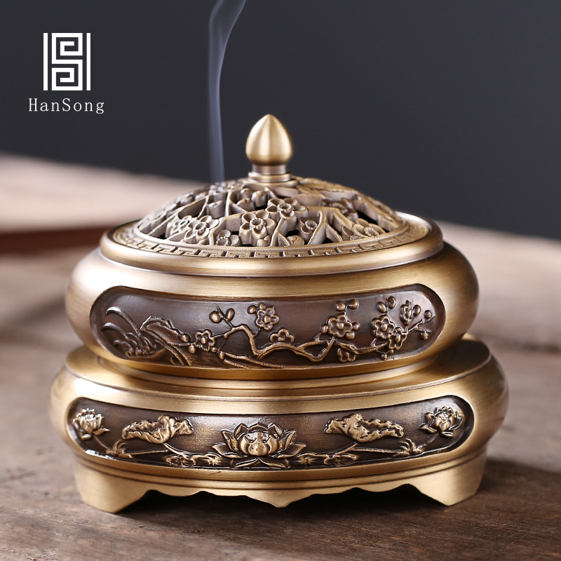Pure copper incense burner sandalwood burner for Buddha offering incense incense incense home indoor ring incense burner tea ceremony creative ornaments
