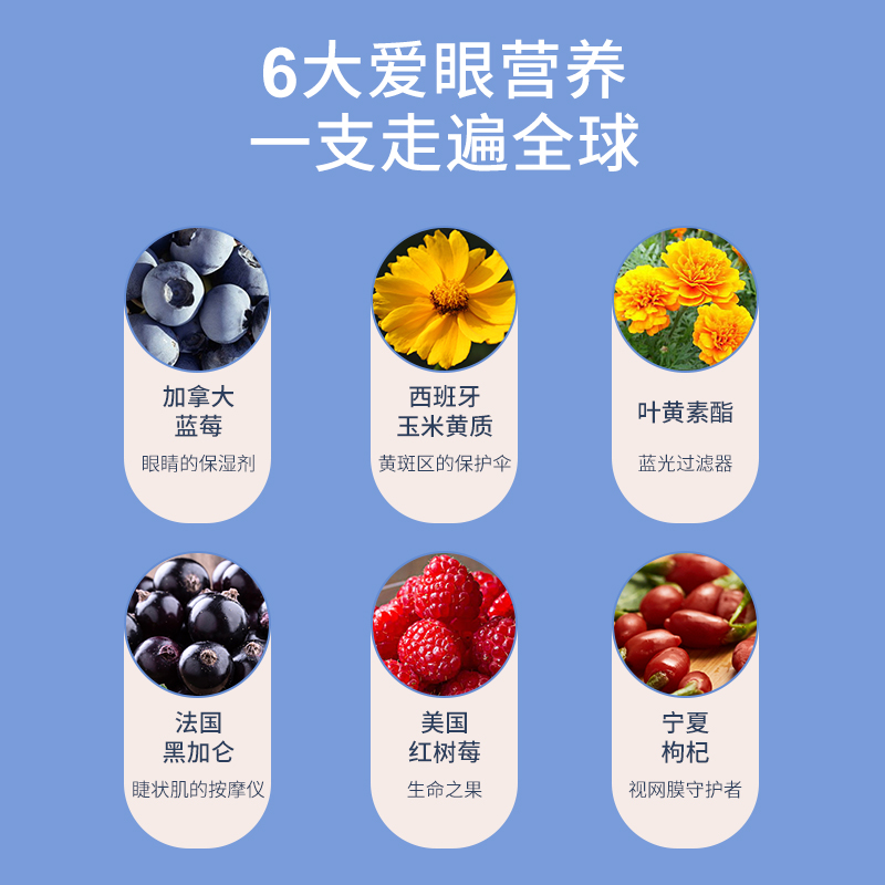 Water Oligomeric isomaltose Wolfberry juice Erythritol frozen blueberry juice blackcurrant juice Purple carrot juice Lutein ester powder, etc (see the box ingredients list for details)