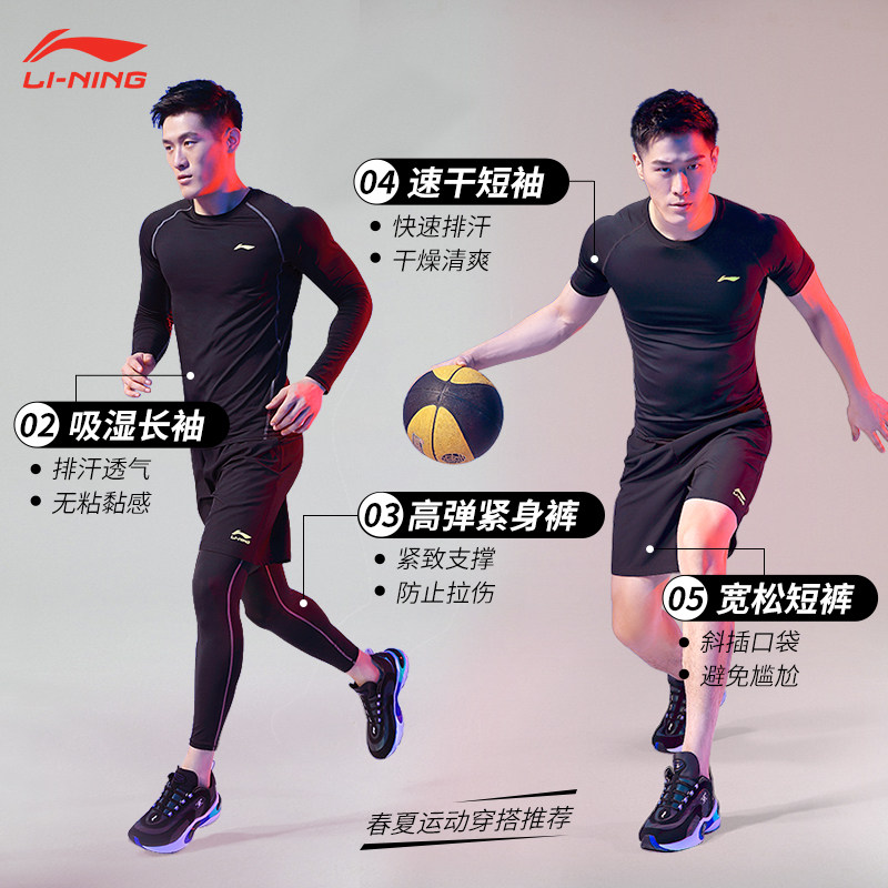 Li Ning fitness clothes men's suits sports running equipment tights physical training clothes gym quick-drying clothes autumn