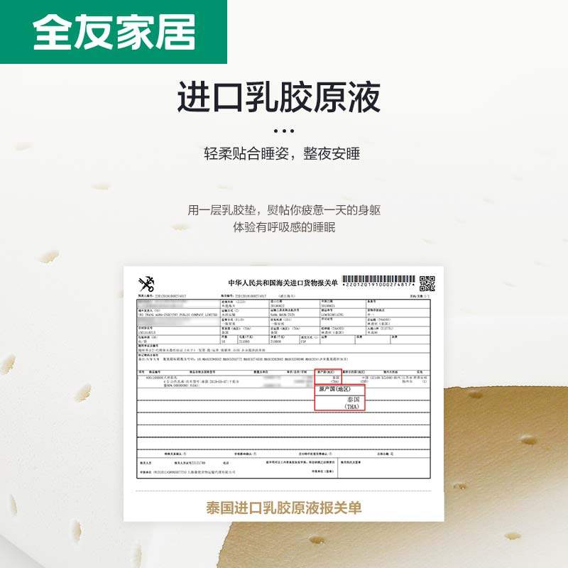 Quanyou home latex mattress dual-use 1 2m1 5m 1 8m spring pad pad hard pad single bag mute 105169