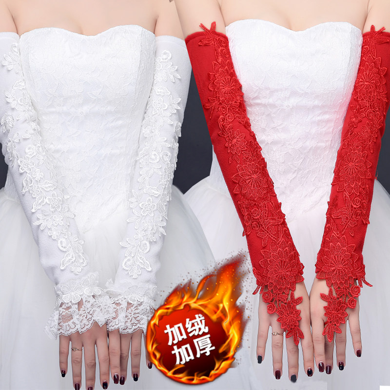 Bridal Wedding Dresses Wedding Gown Wedding Gown Cuff Sleeve 2021 New Long Version Plus Suede Winter Lace Red Woman Warm